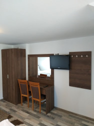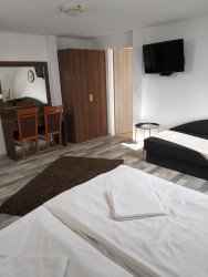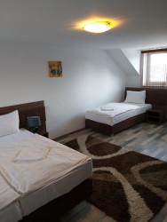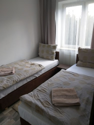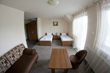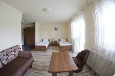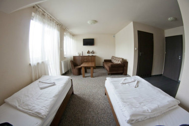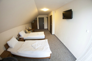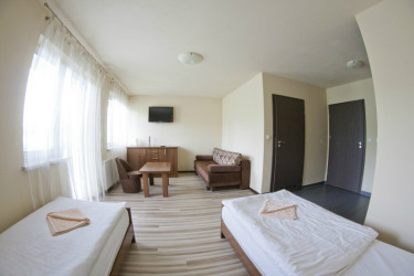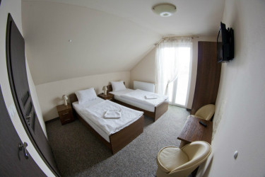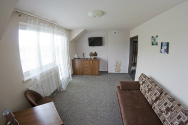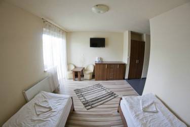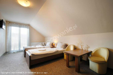 Komfortowo urządzone pokoje 1,2,3 i 4 – osobowe z łazienką, TV i bezprzewodowym internetem, oraz 2-osobowe apartamenty, łącznie 60 miejsc noclegowych. Gości planujących dłuższy pobyt z pewnością ucieszy możliwość skorzystania z bogato wyposażonej siłowni, bilarda oraz wypożyczalni rowerów. Doba hotelowa zaczyna się o 14:00, a kończy o 10:00 dnia następnego